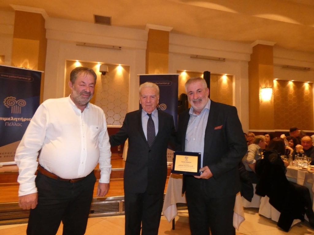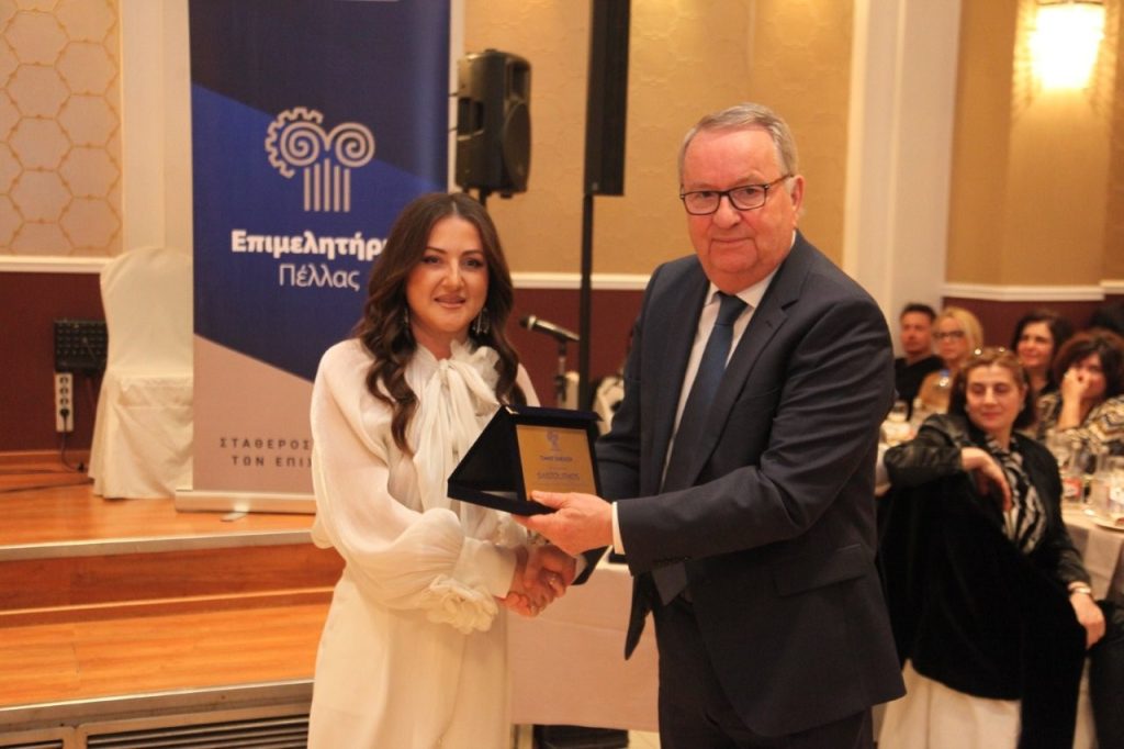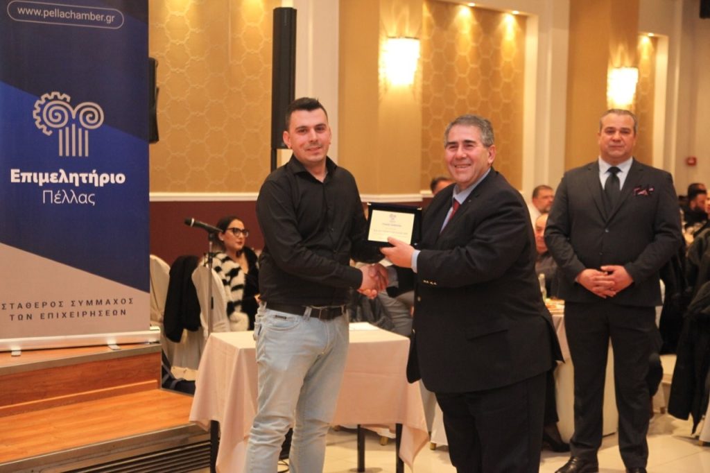 Μετά την ολοκλήρωση των ομιλιών, το Επιμελητήριο Πέλλας προχώρησε στη βράβευση επιχειρήσεων για τη συνεισφορά τους στην ανάπτυξη του Νομού Πέλλας: